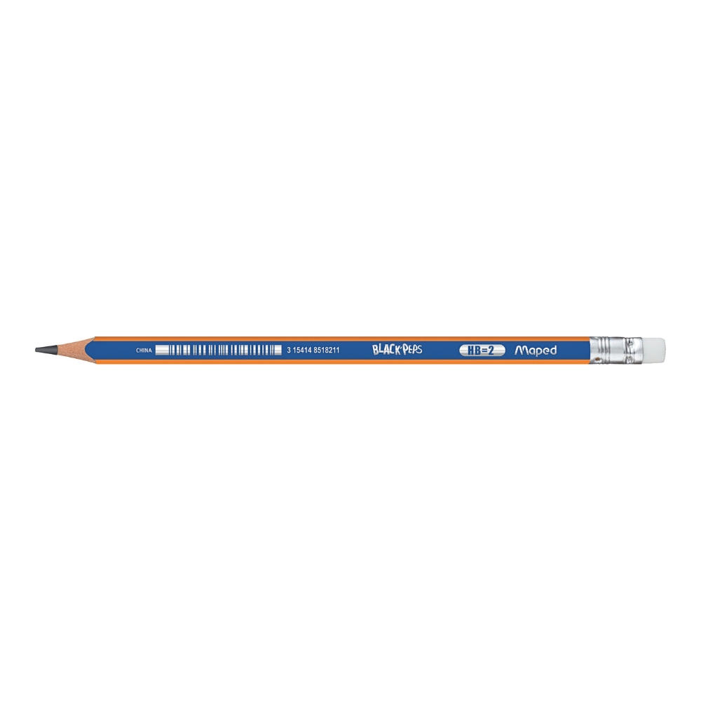 Bút Chì Đen Không Gỗ Có Gôm HB x12 Maped là dòng bút chì thuộc thương hiệu Maped, phù hợp cho nhu cầu viết, ghi chú và sử dụng thường xuyên trong học tập, công việc cũng như bán lẻ văn phòng phẩm. Sản phẩm thuộc dòng Black’Peps Navy, có thiết kế phối màu xanh – cam nổi bật, tạo cảm giác hiện đại và dễ nhận diện trên bàn học hoặc bàn làm việc.